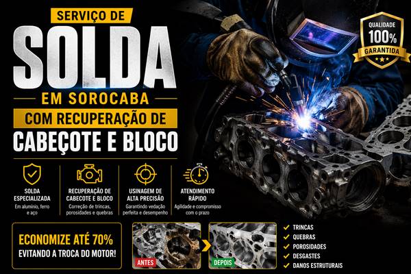 Somos especializados em serviço de solda em Sorocaba com foco na recuperação de componentes automotivos críticos, como cabeçotes e blocos de motor. Atuamos com tecnologia, precisão e experiência prática, oferecendo soluções que evitam a substituição de peças e reduzem drasticamente o custo da manutenção. Nosso objetivo é restaurar a integridade estrutural das peças, garantindo vedação perfeita, resistência térmica e durabilidade, mesmo em condições severas de uso.